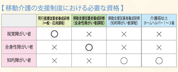 上記の表のように障がいの種類によって、介助を行う際の資格が異なります!