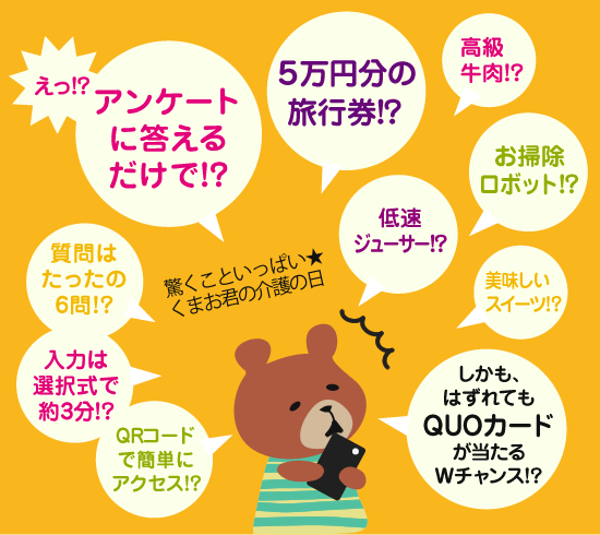 パソコンやスマートフォンから専用サイトにアクセスし、アンケートに答えるだけで、抽選で11名様に豪華賞品が当たります!!