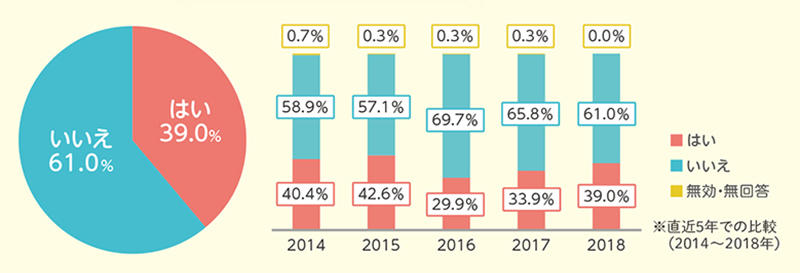 今年で11年目を迎える「介護の日」。昨年から5.1pt増の約4割(39.0%)となりましたが、「知らない」と回答した介護スタッフは約6割(61.0%)となり、依然として認知度が低い状態が続いています。