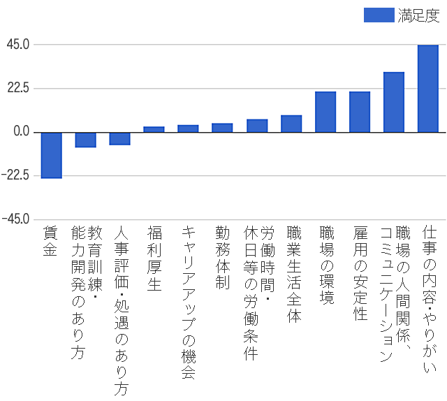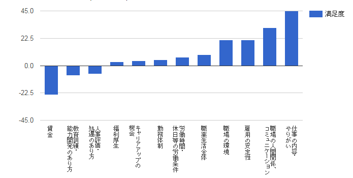これをみると、みなさん賃金をはじめとした様々な不満を抱えていることがわかります。