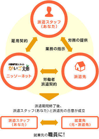 ニッソーネットから有料老人ホームで勤務を始めて、3ヶ月派遣社員として働きました。
